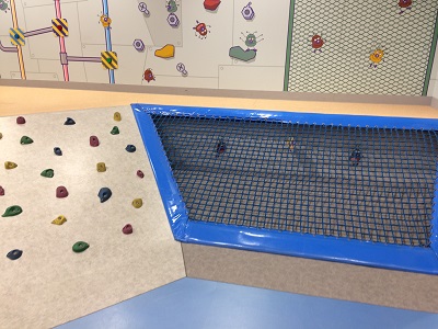 こちらはすべり台、そしてボルダリングとネットゾーンが繋がったエリア。