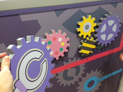 こちらの歯車はマグネットになっていて、壁に付け外しできるようになっています。