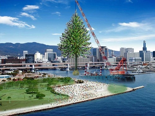 富山港から神戸港に到着したツリーは、11月17日に「植樹式」として、メリケンパークに植え込まれるようです。